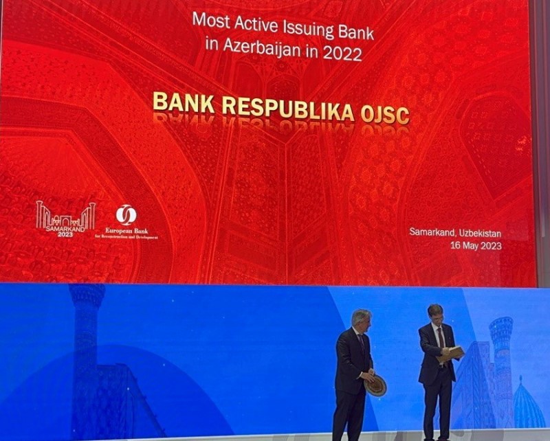 (®) Bank Respublika - Avropa Yenidənqurma və İnkişaf Bankının (EBRD) tərəfindən Ticarətə Yardım Proqramı (The Trade Facilitation Programme, TFP) çərçivəsində 2022-ci il üzrə ticarətin maliyyələşdirilməsi sahəsində “Azərbaycanda ən fəal emitent-bank” adına layiq görülüb.