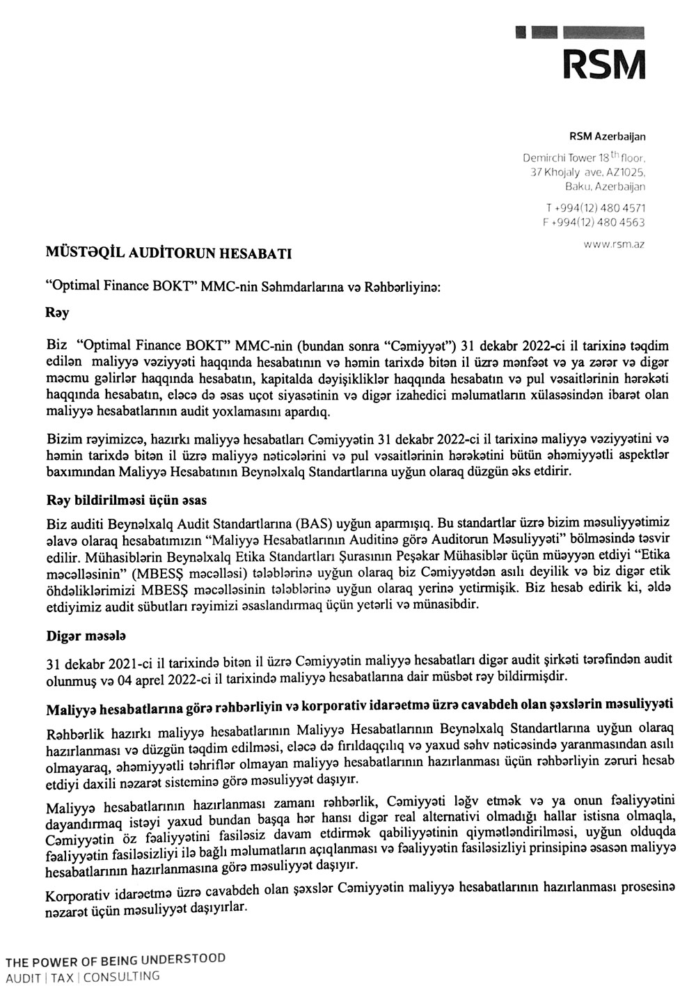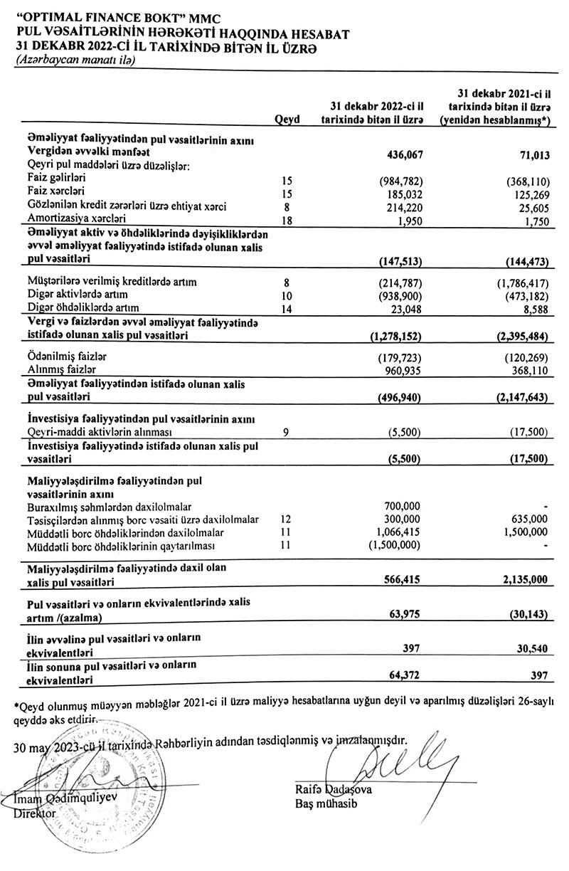 “Optimal Finance BOKT” MMC 2022-ci il üzrə maliyyə hesabatını açıqladı