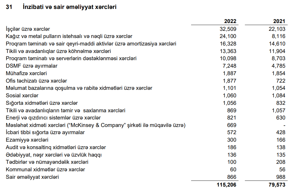 Marja.az Mərkəzi Banka istinadən xəbər verir ki, 2021-ci illə müqayisədə 2022-ci ildə inzibati və sair əməliyyat xərcləri 35 milyon 633 min manat artıb.