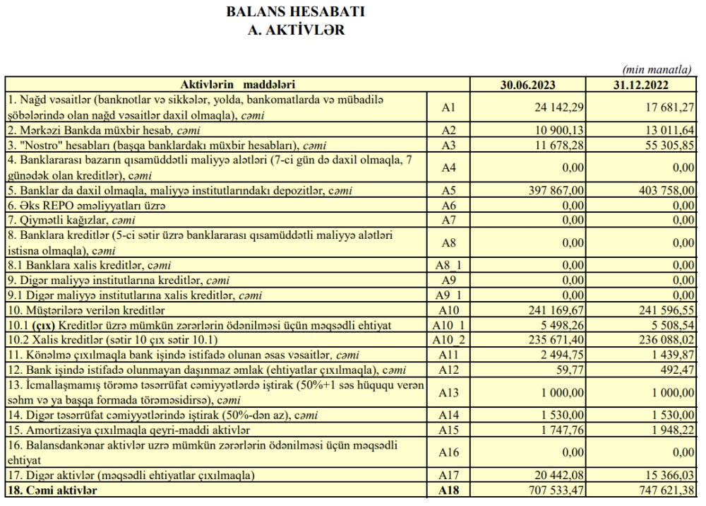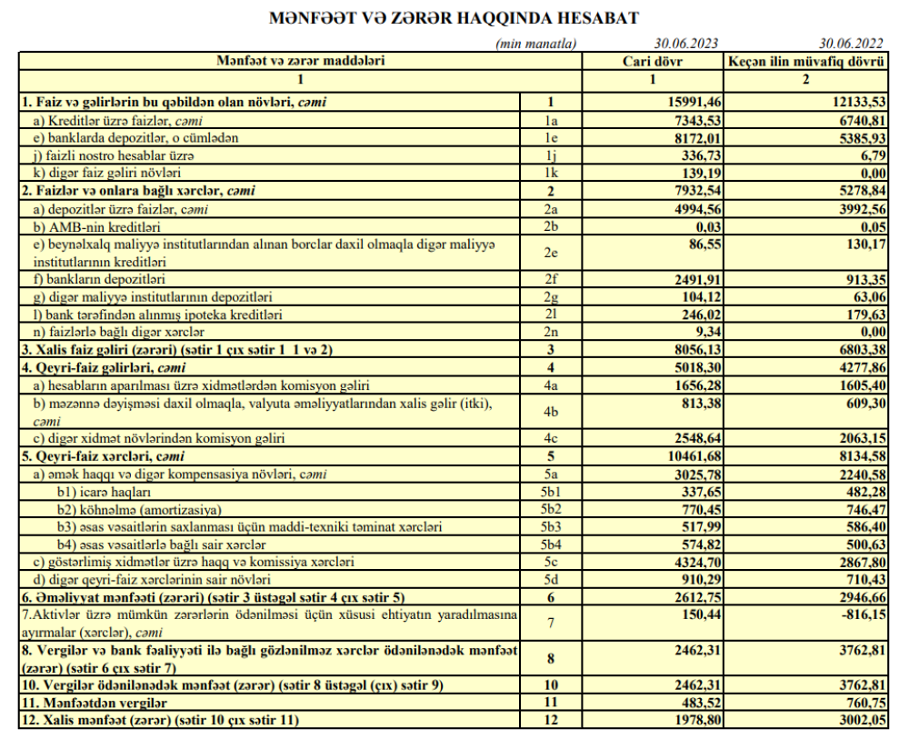 Müqayisə üçün qeyd edək ki, 2022-ci ilin birinci yarısında "Azərbaycan Sənaye Bankı"nın əməliyyat mənfəəti 2 milyon 947 min manat təşkil etmişdi. Ehtiyatdan azad olmuş 816 min manat da mənfəətə əlavə edilmişdi.