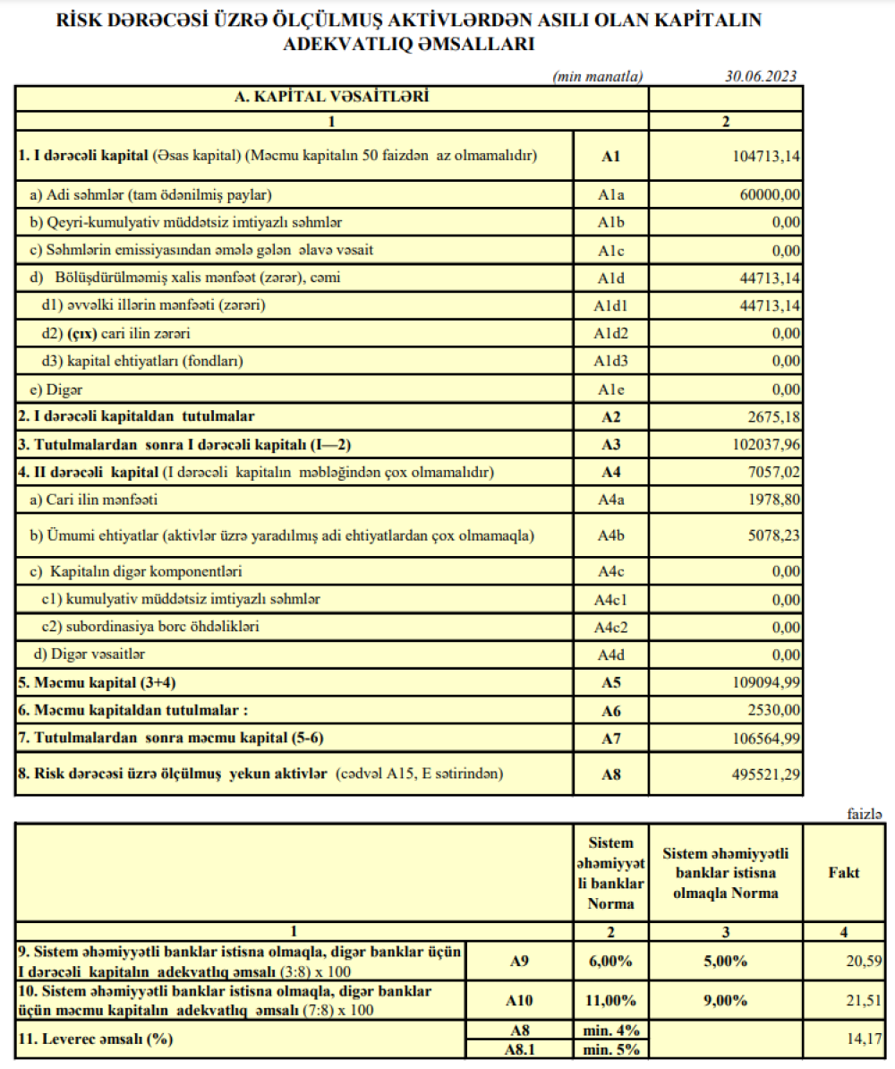 30 İyun 2023-cü il tarixində "Azərbaycan Sənaye Bankı" 106 milyon 565 min məcmu kapitala malik olub.