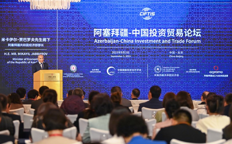 Forumda iqtisadiyyat naziri Mikayıl Cabbarov tədbirin möhkəm və davamlı əlaqələri simvolizə edən platforma olduğunu, iqtisadi artım, ticarətin genişləndirilməsi və qarşılıqlı əməkdaşlıq imkanlarını müzakirə etmək baxımından xüsusi əhəmiyyət kəsb etdiyini vurğulayıb. Azərbaycan-Çin münasibətlərinin strateji tərəfdaşlıq səviyyəsinə yüksəlməsi iqtisadi-ticarət əlaqələrinin də inkişafına geniş imkanlar açır. İki ölkə arasında müvafiq olaraq sərmayələrin təşviqi və qorunması və ikiqat vergitutmanın qarşısının alınması üzrə iqtisadi əlaqələrin gücləndirilməsinə yönəlmiş bir sıra sazişlər, həmçinin texniki-iqtisadi əməkdaşlığa dair sənədlər imzalanıb. Çin Azərbaycanın əsas ticarət tərəfdaşlarından biridir. Ölkələrimiz arasında səmərəli investisiya əməkdaşlığı həyata keçirilir. Azərbaycanda Çin investisiyalı 275 şirkət qeydiyyatdan keçib. Bundan başqa, Azərbaycanın işğaldan azad edilmiş ərazilərində başlanan infrastruktur layihələrində iştirak üçün Çin şirkətləri müraciət edib. “Huawei” şirkəti isə artıq bu regionda “ağıllı kənd” və “ağıllı şəhər” layihələrində iştirak edir.