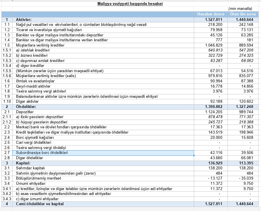 Milyonlarla insanın müştərisi olduğu bank maliyyə vəziyyətini açıqladı
