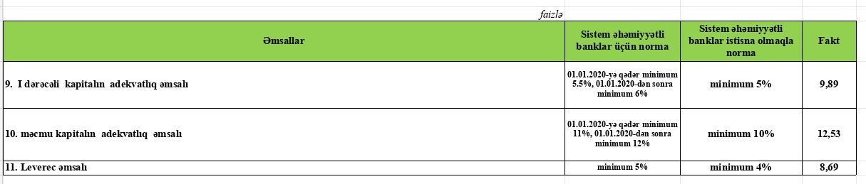 "Açıqlanan hesabatdan görünür ki, bank dayanıqlı inkişaf üçün kifayət qədər yüksək kapital ehtiyatına malikdir və bankın kapitalı 7% artaraq 119,5 milyon manata çatıb",- məlumatda bildirilir.