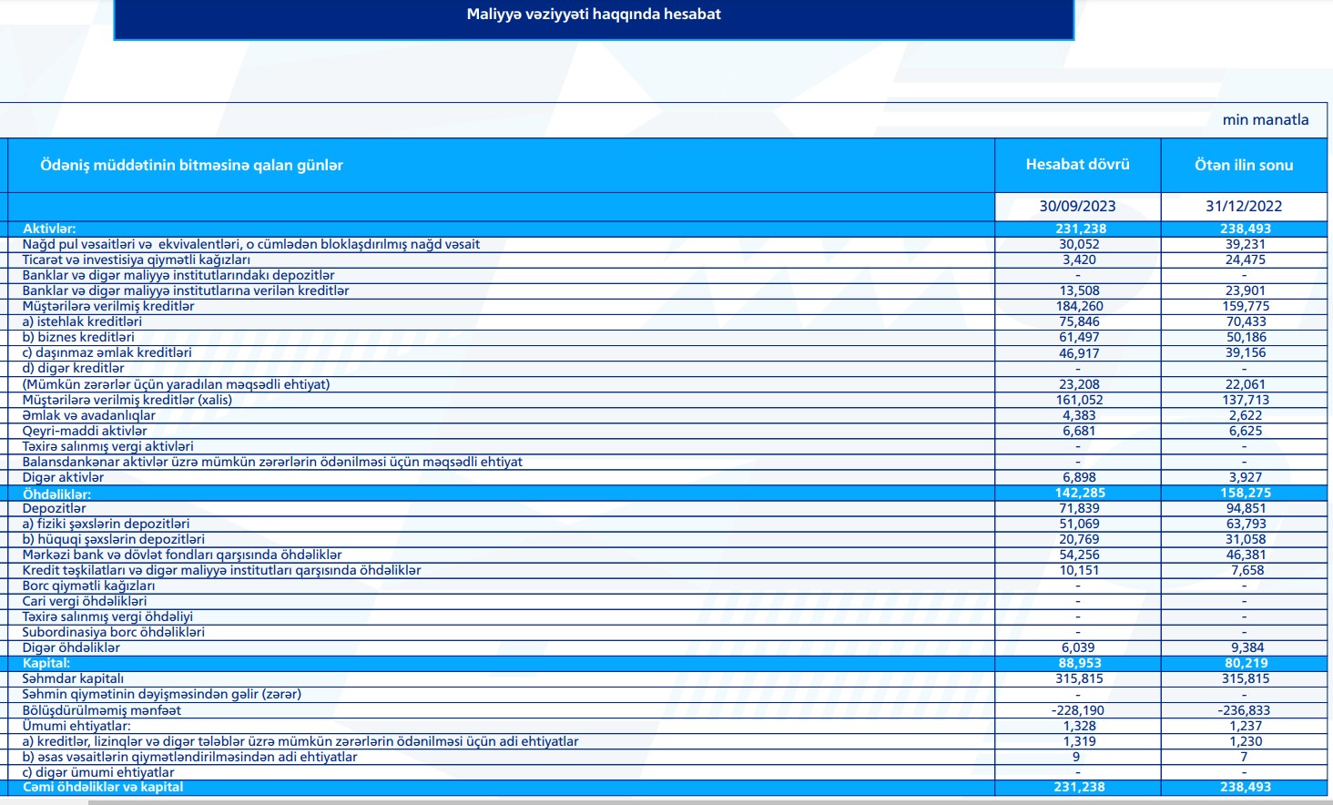 Müqayisə üçün qeyd edək ki, 2022-ci ilin 9 ayında "Bank VTB Azərbaycan"ın cəmi əməliyyat gəlirləri 29 milyon 502 min manat, cəmi əməliyyat xərcləri 28 milyon 262 min manat, əməliyyat mənfəəti 1 milyon 240 min manat, ehtiyatlardan azad olan vəsait 8 milyon 330 min manat təşkil etmişdi.