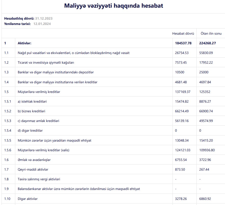 Ötən il Bankın qiymətli kağızlara sərmayələri, digər banklar və maliyyə institutlarındakı depozitləri azalıb.