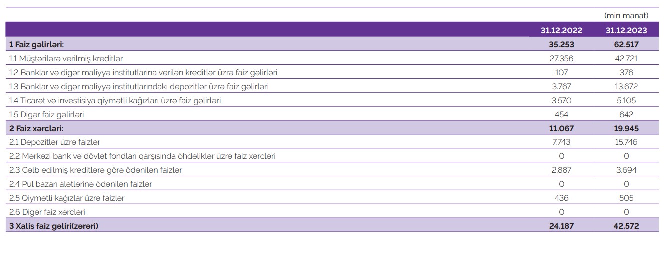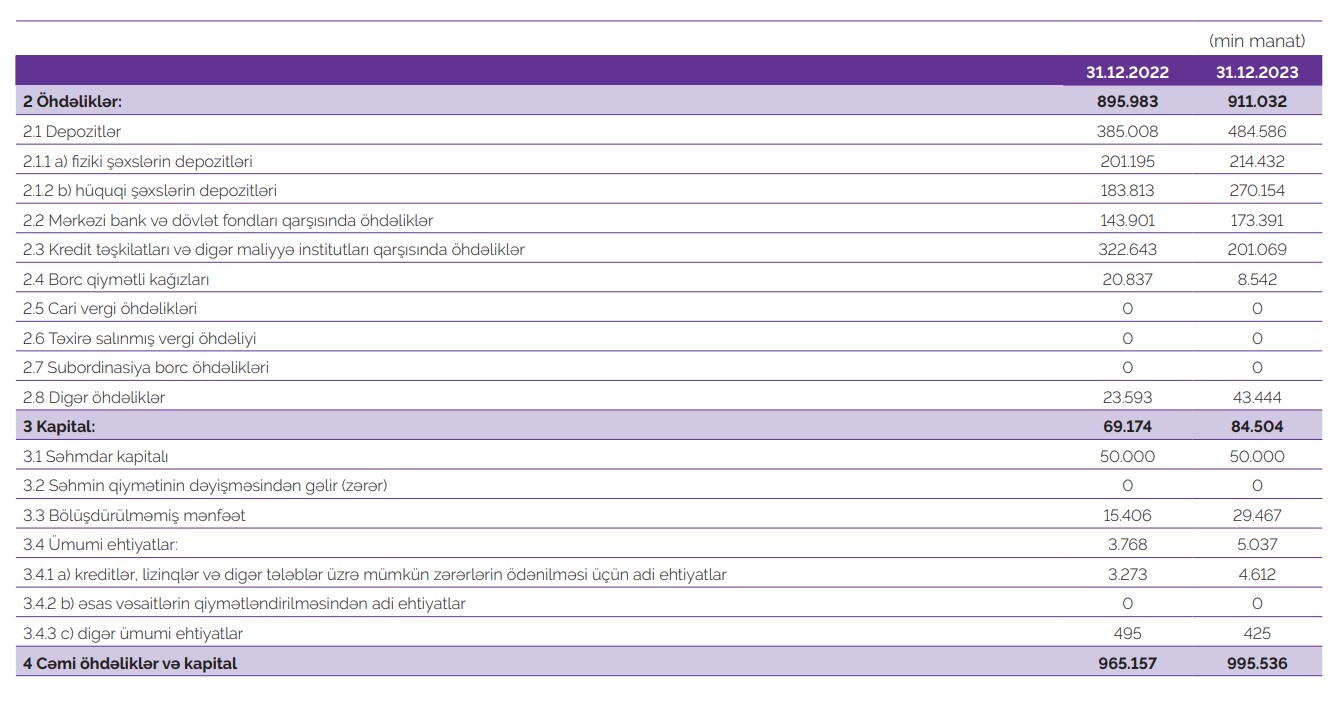 Marja.az xəbər verir ki, o cümlədən, ötən il Bankın cəmi kredit portfeli (müştərilərə verilmiş kreditlər)125 milyon 676 min manat və ya 39% artaraq 447 milyon 399 min manata çatıb.