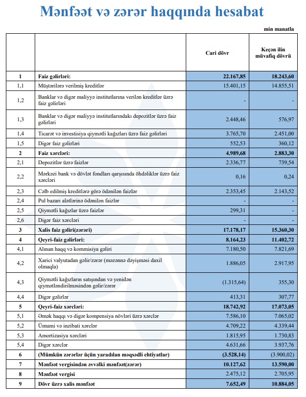 "AFB Bank" ASC 2023-cü il üzrə maliyyə göstəricilərini açlıqlayıb.