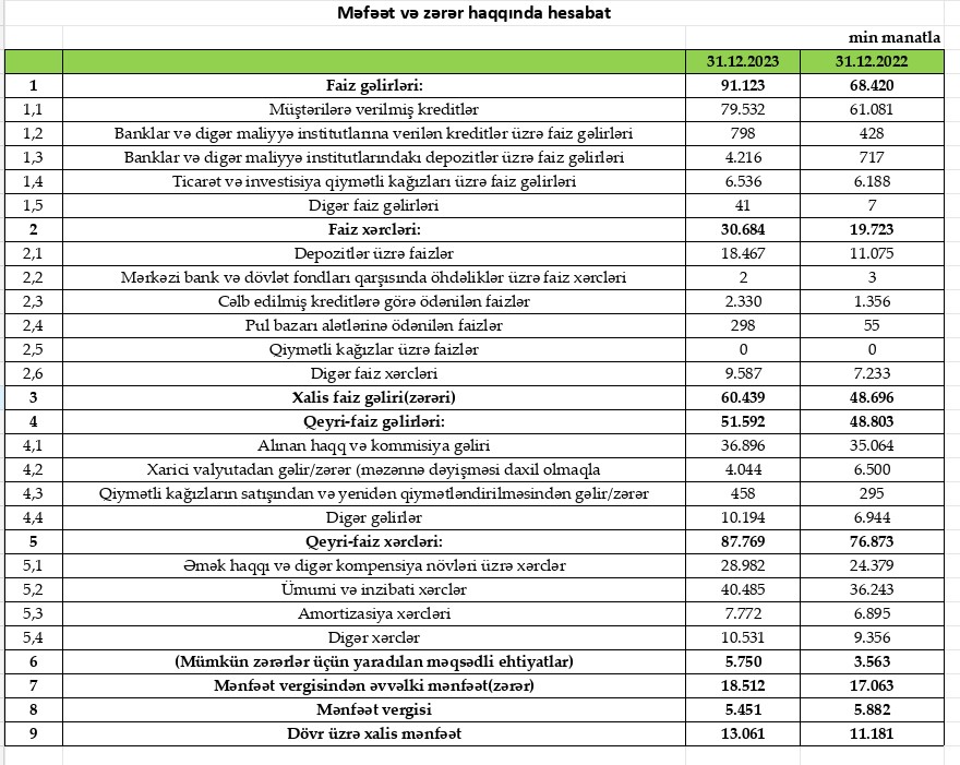 Beləliklə, "Rabitəbank"ın xalis mənfəəti 2023-cü ildə 2022-ci illə müqayisədə 1 milyon 880 min manat və ya 16,8% artıb. Xalis mənfəətin artması gəlirlərin artmasından qaynaqlanır.