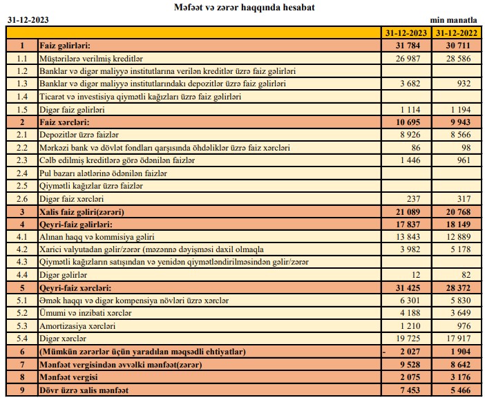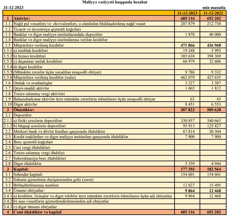 "Premium Bank" ASC 2023-cü il üzrə maliyyə nəticələrini açıqlayıb.