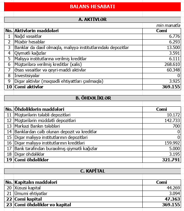 Bankın ani likvidlik əmsalı isə 89% təşkil edir (Mərkəzi Bankın minimum tələbi - 30%).
