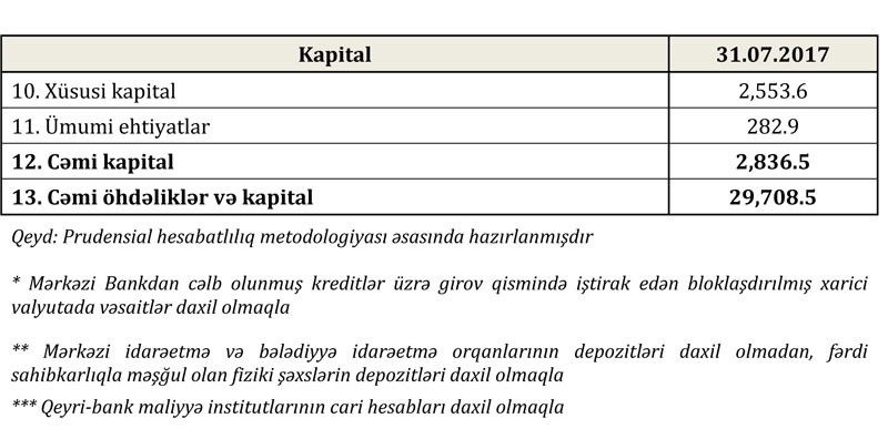 2017-ci ilin31 iyul tarixinə olan bank sektorunun əsas göstəriciləri bank sektorunun icmal göstəricilərində öz əksini tapmışdır.
