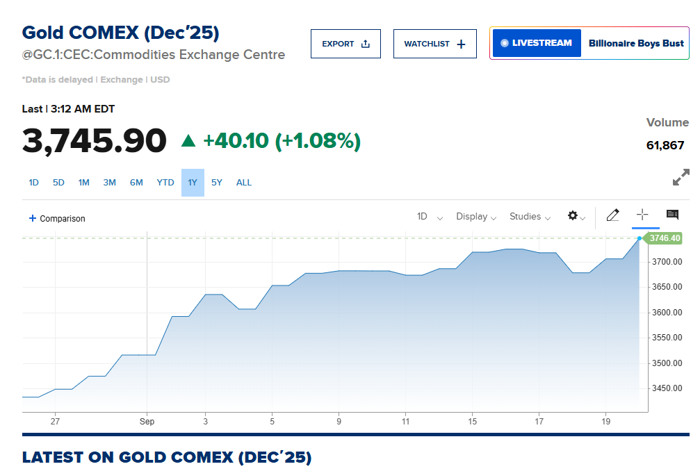 Qızılın yeni rekord hədlərə qalxması FED-in ötən həftə 0,25 baza bəndi faiz endirməsindən sonra baş verib. Mərkəzi Bank qərarını əmək bazarında artan risklərlə əsaslandırıb və qarşıdakı aylarda əlavə endirimlərin ola biləcəyi barədə siqnal verib.