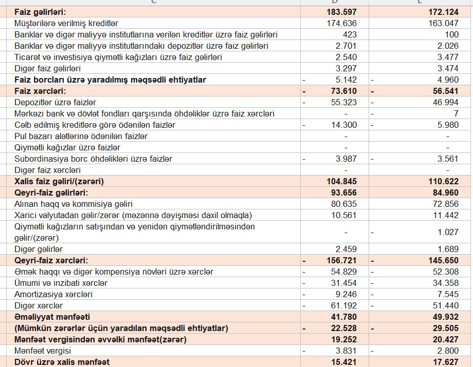 Bankın məcmu gəlirlərinin cəmi 277 milyon manata çatıb. Bu əvvəlki ilin eyni dövrü ilə müqayisədə 20 milyon manat artım deməkdir. Hesabat dövründə əməliyyat mənfəəti 42 milyon manat olub, xalis mənfəət isə 15,4 milyon manat təşkil edib.