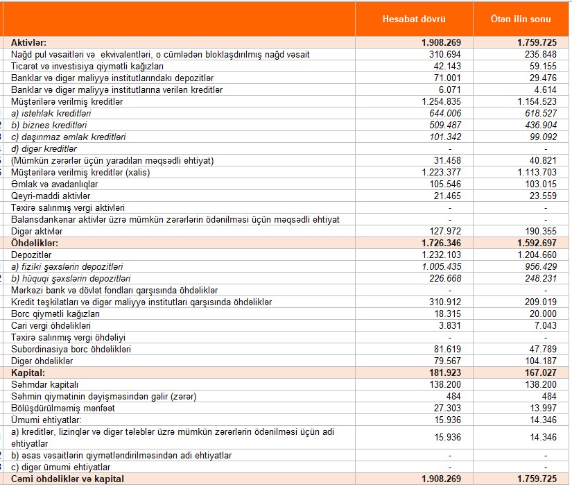 Bankın kapital və aktiv bazasında yüksək artım qeydə alınıb. Məcmu kapital 33% artaraq, 224 milyon manata çatıb, aktivlərin həcmi isə 192 milyon manat artaraq 1,9 milyard manatı ötüb.