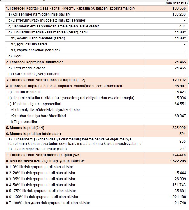 Bank ilk 9 ayı ərzində kapital adekvatlılığı əmsalını da yüksəldib. Bu göstərici 30 sentyabr 2025-ci il tarixə 14,74 % təşkil edib.
