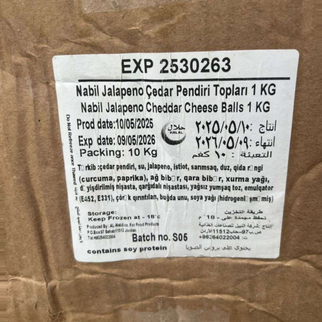 Azərbaycan Qida Təhlükəsizliyi Agentliyinin əməkdaşları tərəfindən aparılan nəzarət tədbirləri zamanı "GFC" MMC-nin İordaniyadan idxal etdiyi 1200 kiloqram “Nabil Jalapeno Çeddar Pendirli Kürəciklər” əmtəə nişanlı pendir məhsulu partiyasında mikrobioloji çirklənmə (Listeria monocytogenes) müəyyən edilib.