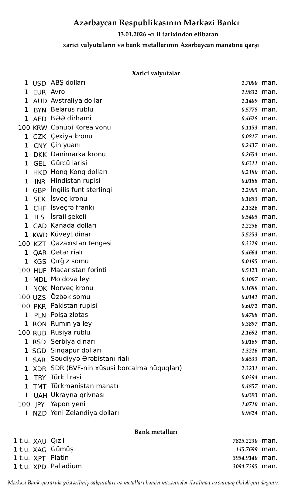 Dolların sabah üçün rəsmi məzənnəsi müəyyən olunub