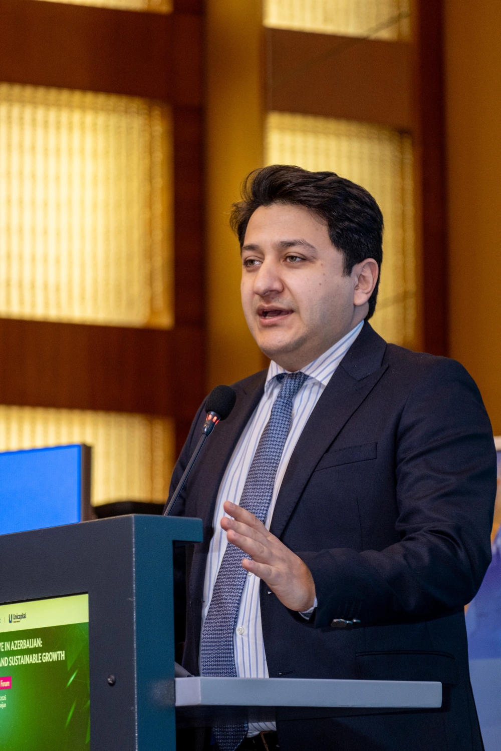 Qeyd edilib ki, AİB-in ölkə üzrə direktoru Sünniyə Durrani-Camal, Unicapital-ın baş direktoru Vüqar Namazov və ABB Invest-in baş direktoru Nadir Babazadə “Azərbaycan üçün İnkişafın Növbəti Mərhələsi: Yaşıl və Davamlı Artım Üçün Kapital Bazarları”  forumunda açılış nitqi ilə çıxış edib.