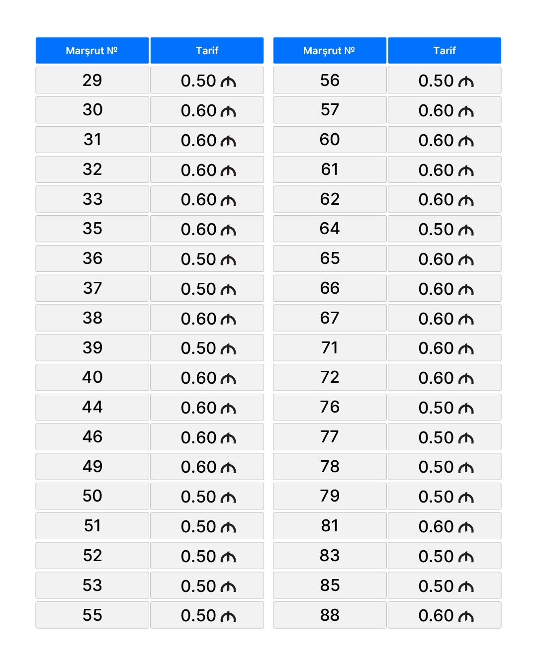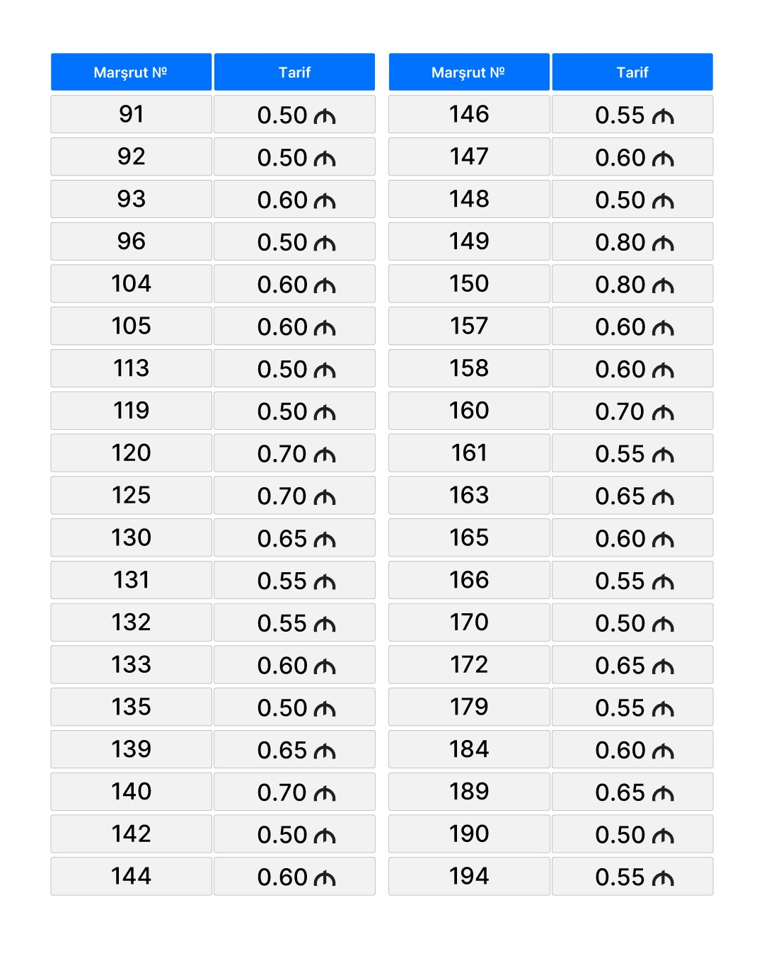 Bakıda bəzi avtobuslarda yeni tariflər müəyyənləşdi - SİYAHI