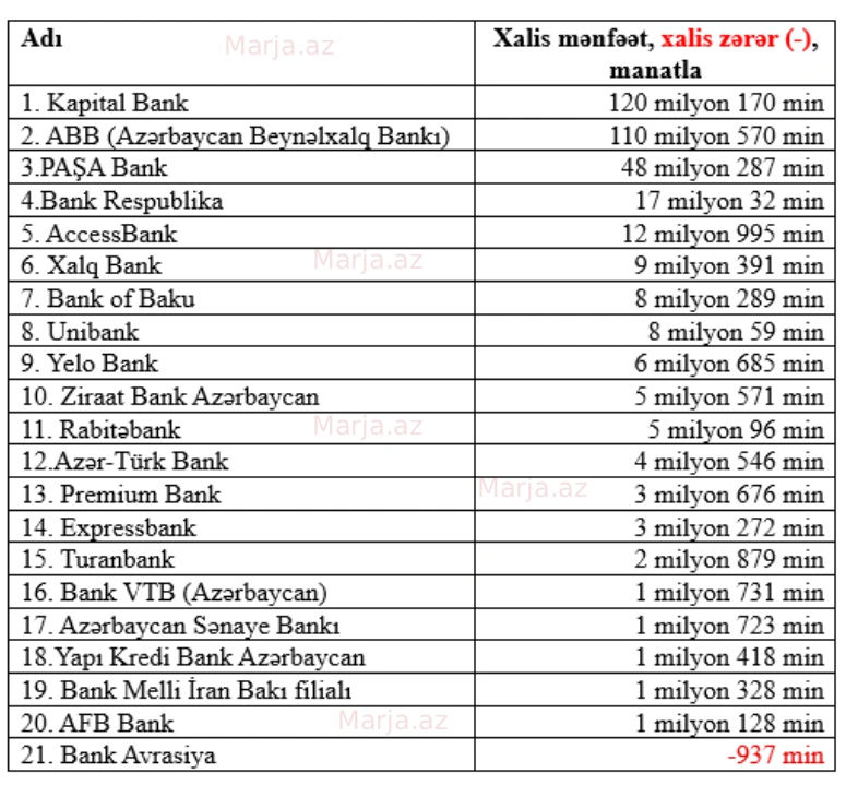 20 bank xalis mənfəət, 1 bank xalis zərər açıqladı - SİYAHI