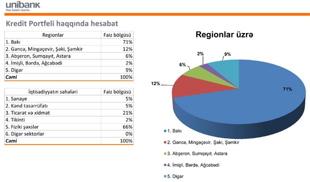 “Unibank”ın vəziyyəti düzəlir. Bank böyüyüb, müştərilərə verdiyi kreditlər və kapitalı artıb.