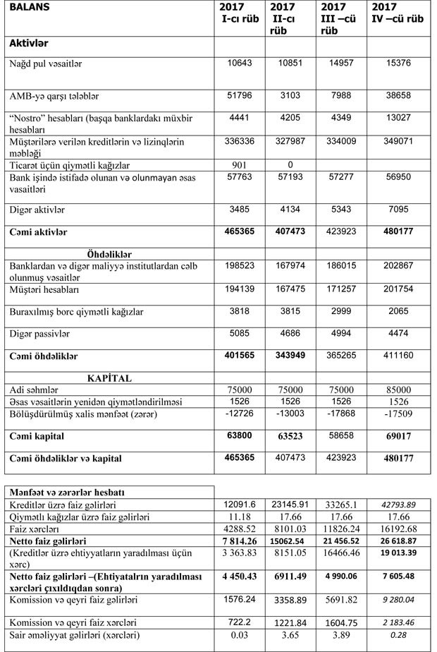 Bankı müştərilərə verdiyi kreditlər ötən ilin sonundakı 349 milyon 71 min manatdan 30 Sentyabr 2018-ci il tarixində 376 milyon 319 min manata yüksəlib (7,8% artım).