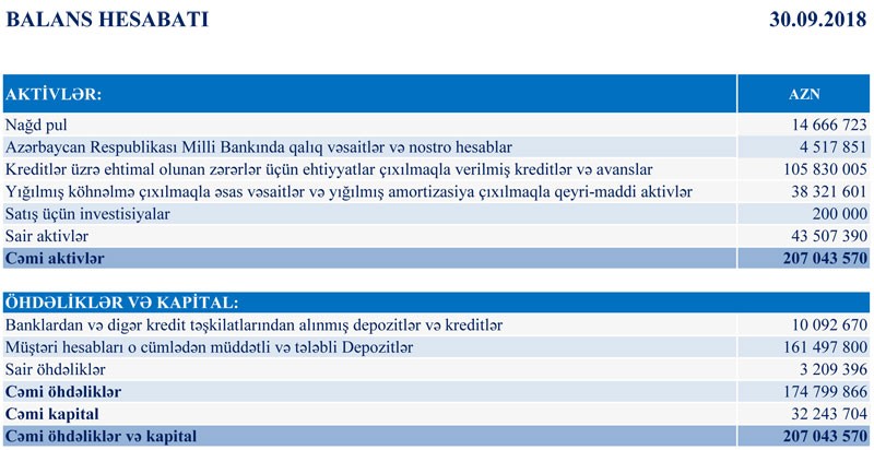 “Amrahbank” ASC 2018-ci ilin 9 ayı üzrə maliyyə göstəricilərini açıqlayıb.