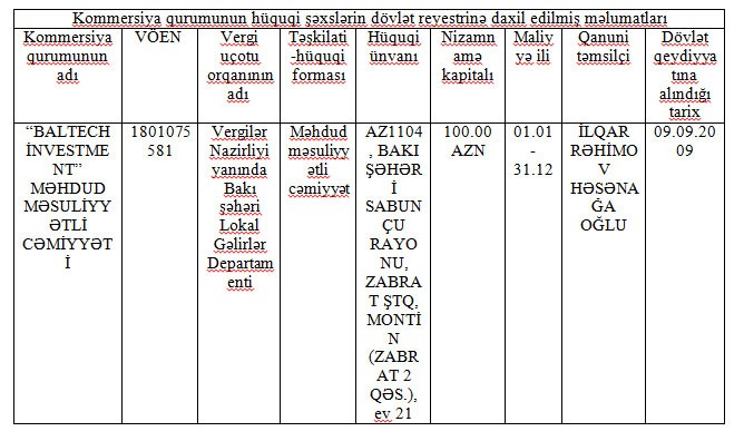 Qeyri-rəsmi məlumata görə, "Azerinteltek"də 75,5% paya malik olacaq "Baltech Investment LLC" şirkəti “Azərbaycan Dəmir Yolları” Qapalı Səhmdar Cəmiyyətinin sədri, Milli Məclisin deputatı Cavid Qurbanova məxsusdur.