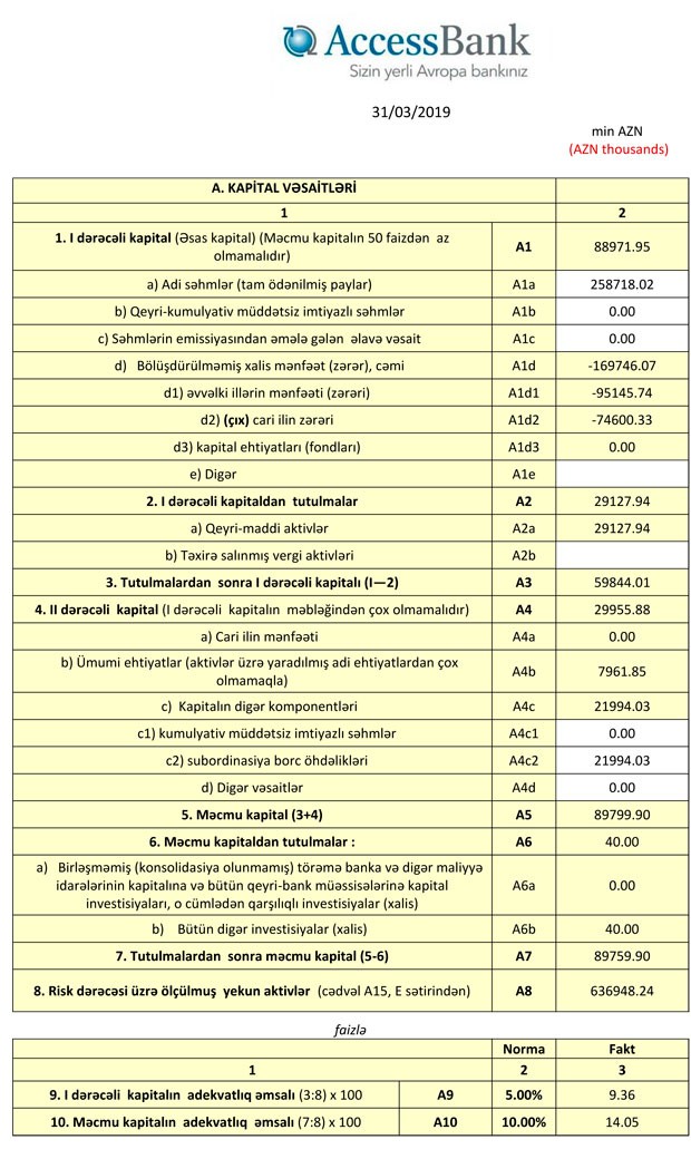 Arxada qoyduğumuz rüb ərzində baş tutan kapitallaşma prosesindən sonra məcmu kapital 89,8 mln. manata çatıb və normanı 1,8 dəfə üstələyir. Bundan başqa, I dərəcəli kapitalın adekvatlıq əmsalı 9,36%, məcmu kapitalın adekvatlıq əmsalı isə 14,05% təşkil edib ki, bu da normadan müvafiq olaraq 1,9 dəfə və 1,4 dəfə çoxdur.