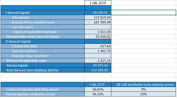 Müqayisə üçün qeyd edək ki, Rusiyanın iri bankının Azərbaycandakı törəməsi olan "VTB Bank Azərbaycan" 2018-ci ilin yanvar-mart dövrünü 247 milyon 412 min manat zərər ilə başa vurumuşdu. Bank 9 milyon 981 min manat xalis əməliyyat zərərindən başqa, ehtiyatlara 237 milyon 430 min manat ayırmışdı. Ayırma ilə Bankın zərəri 247 milyon 412 min manata yüksəlmişdi.