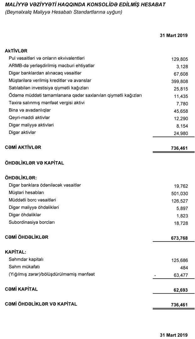 “Unibank” 2019-a necə başlayıb? - BANK MALİYYƏ VƏZİYYƏTİNİ AÇIQLADI