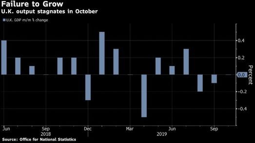 Böyük Britaniya iqtisadiyyatı Noyabr ayında gözlənilməz bir şəkildə yerində sayaraq, 2009-cu ildən bəri ilk dəfə ardıcıl üçüncü ayda da arta bilməyib.