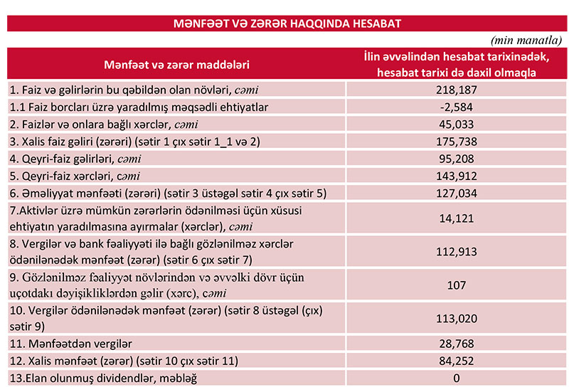 Azərbaycanın iri bankı son maliyyə vəziyyətini açıqladı – 84 MİLYON MANAT MƏNFƏƏT