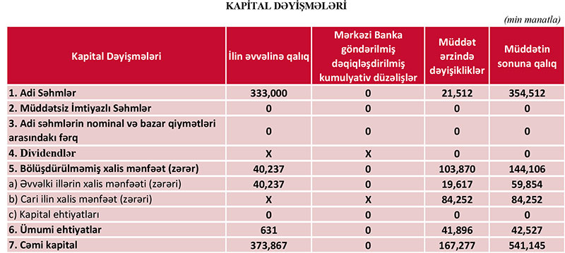 Ötən il PAŞA Bankın cəmi kapitalı 65 milyon 377 min manat artaraq 541 milyon 145 min manat yüksəlib.