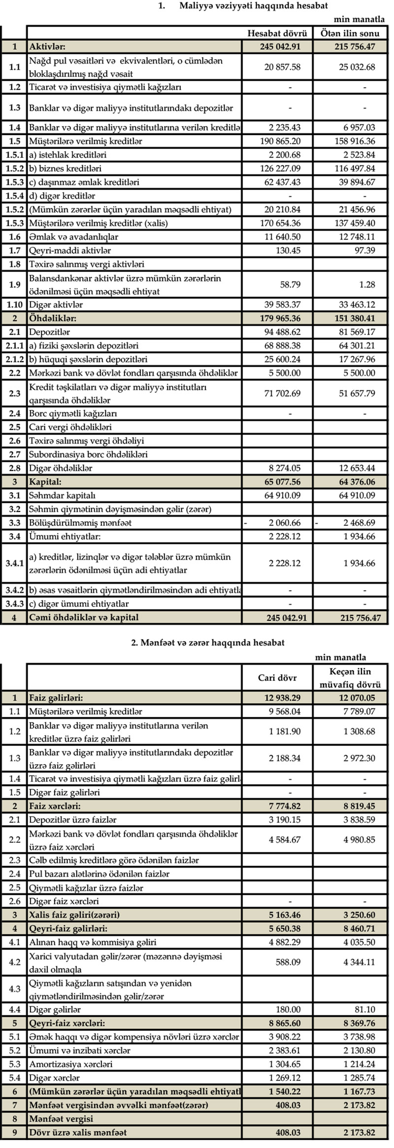 Ötən il Günay Bank 1 milyon 948 min manat əməliyyat mənfəətindən 1 milyon 540 min manat mümkün zərərlər üçün yaradılan məqsədli ehtiyatlara ayırdığından ili 408 min manat xalis mənfəət ilə başa vurub.