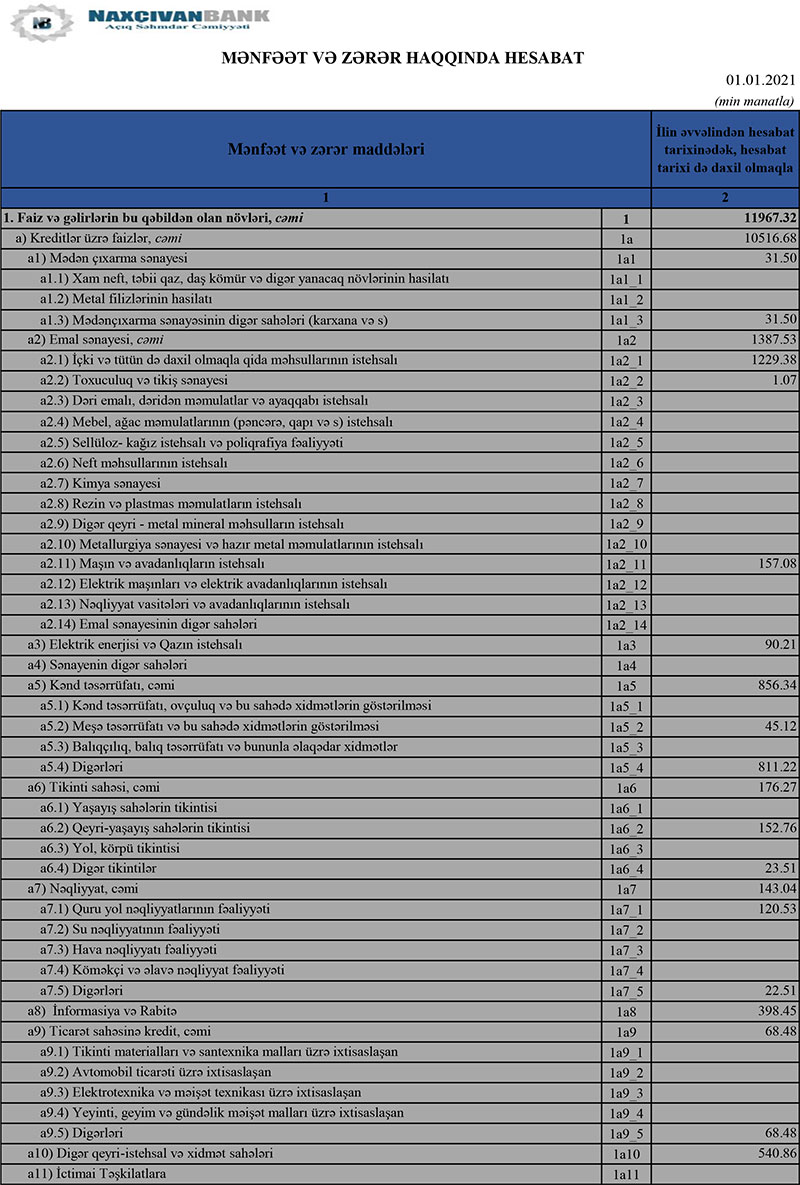 “Naxçıvanbank” ASC 2020-ci ili 7 milyon 323 min manat xalis mənfəət ilə başa vurub. Bank 2019-cu ili 5 milyon 179 min manat xalis mənfəətlə bağlamışdı.
