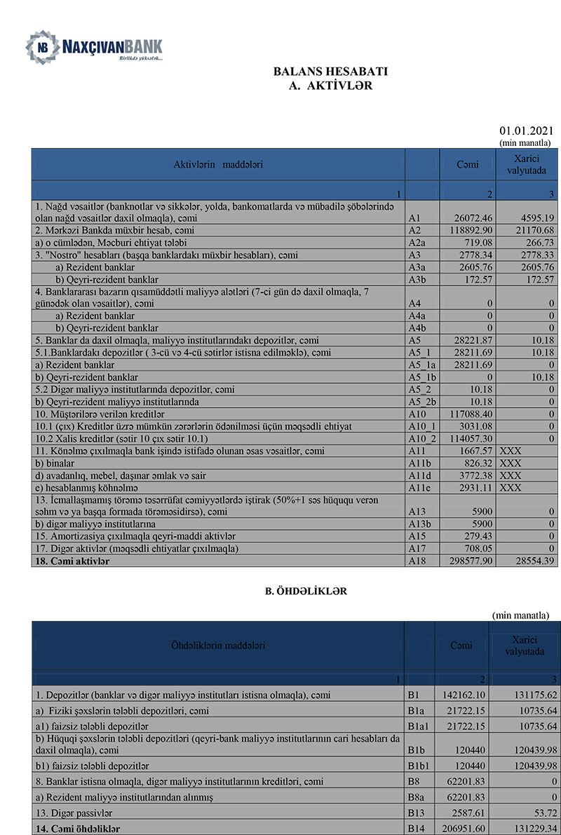 31 Dekabr 2021-ci il tarixində “Naxçıvanbank” 298 milyon 578 min manat cəmi kativlərə malik olub. 2019-cu ildə Bankın aktivləri 232 milyon 21 min manata çatmışdı. Bankın kredit portfeli 92 milyon 446 min manatdan 117 milyon 88 min manata yüksəlib.