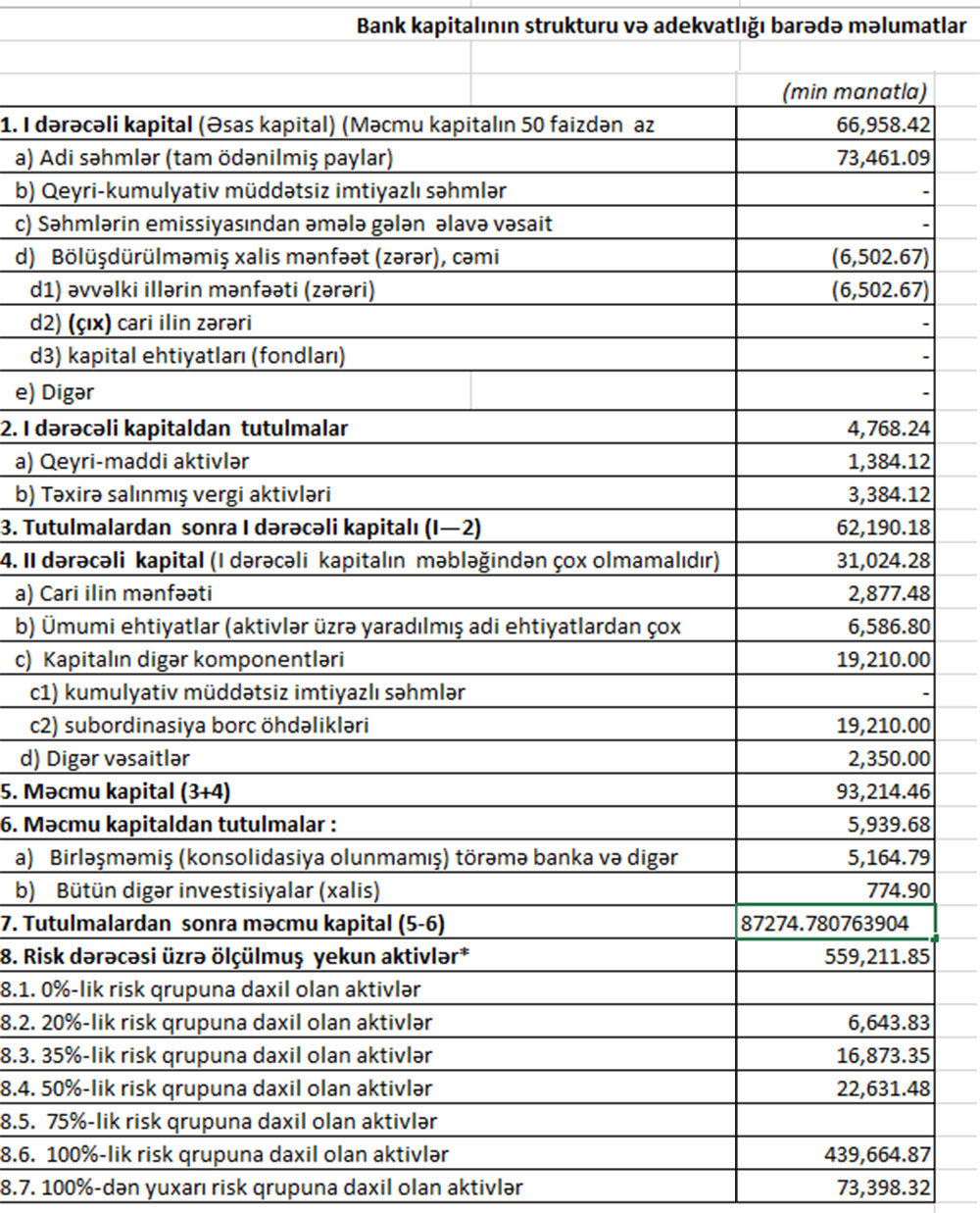 31 Mart 2021-ci il tarixində “Bank Respublika” 87 milyon 275 min manat məcmu kapitala malik olub. Bank ötən ilin sonunda 83 milyon 893 min manat məcmu kapitala malik idi.