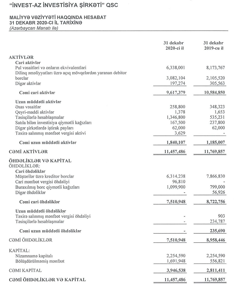 “İnvest-AZ İnvestisiya Şirkəti” QSC 2020-ci ili 1 milyon 135 min manat xalis mənfəət ilə başa vurub. Halbuki, şirkət 2019-cu ili 556 min manat xalis mənfəət ilə bağalmışdı. Beləliklə, ötən il “İnvest-AZ”ın xalis mənfəəti 2 dəfədən çox artıb.
