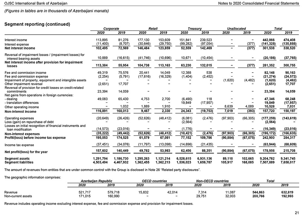 Ötən il müştərilərə verilmiş kreditlər üzrə faiz gəlirləri artsa da, əsas bankçılıq fəaliyyəti ilə birbaşa bağlı olmayan - banklara yerləşdirilmiş vəsaitlər və "Aqrarkredit" vekselləri üzrə faiz gəlirlərinin azalması, xərclərin, o cümlədən pandemiya ilə bağlı kreditlərə görə ayrılmış mümkün zərərin ödənilməsi üçün ehtiyat xərclərində artım xalis mənfəəti ötən ilə nisbətən azaldıb.