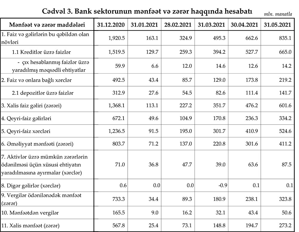 Azərbaycanın bank sektoru 2021-ci ilin yanvar-may dövrünü 273,2 milyon manat xalis mənfəət ilə başa vurub.