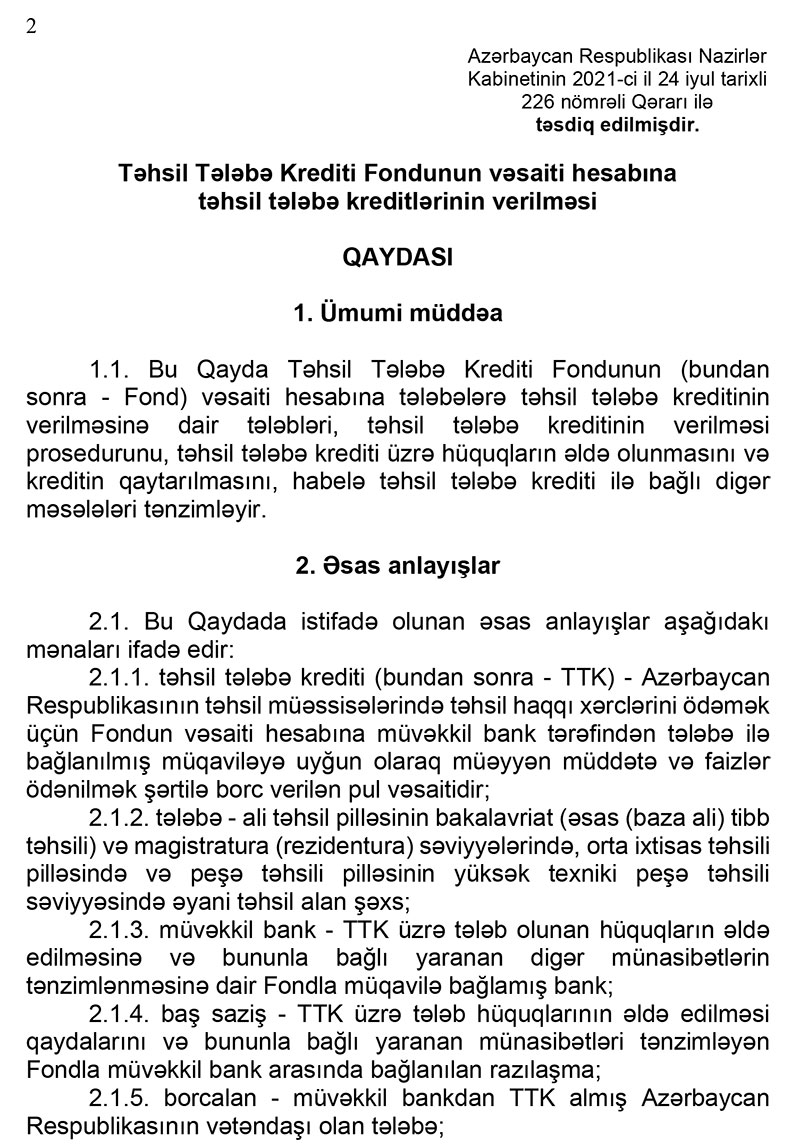 - TTK Fondun vəsaiti hesabına bu Qayda ilə müəyyən edilmiş tələbələrə müvəkkil bank tərəfindən verilir.
