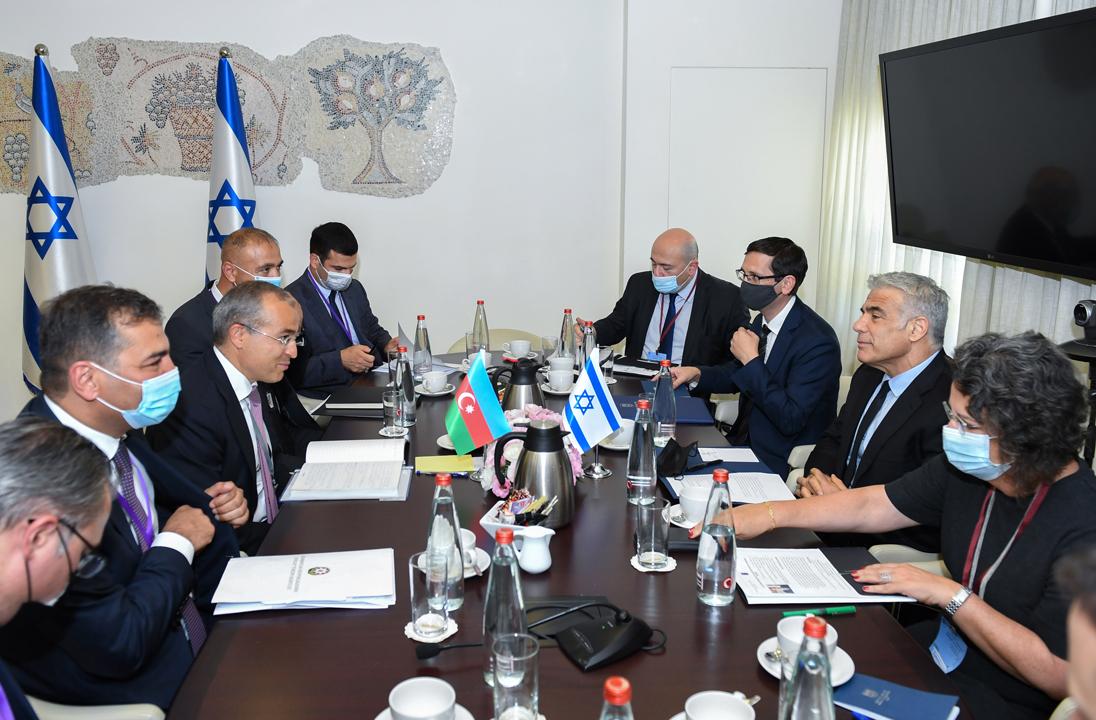 Məlumata görə, nazir İsrailin xarici işlər naziri Yair Lapidlə görüşüb.