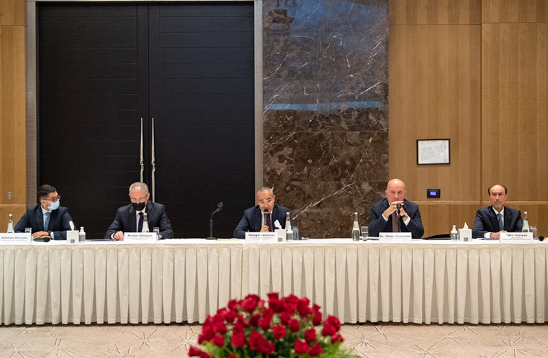 Görüşdə Qarabağ Dirçəliş Fondunun Müşahidə Şurasının sədri, Azərbaycan Respublikasının İqtisadiyyat naziri Mikayıl Cabbarov, Müşahidə Şurasının üzvü, Ekologiya və Təbii Sərvətlər naziri Muxtar Babayev, Azərbaycan Respublikası Mərkəzi Bankının sədri Elman Rüstəmov, Fondun İdarə Heyətinin sədri Rəhman Hacıyev, Azərbaycan Banklar Assosiasiyasının prezidenti Zakir Nuriyev, həmçinin ABA-nın Rəyasət Heyətinin üzvləri və bank sektorunun nümayəndələri iştirak edirdi.