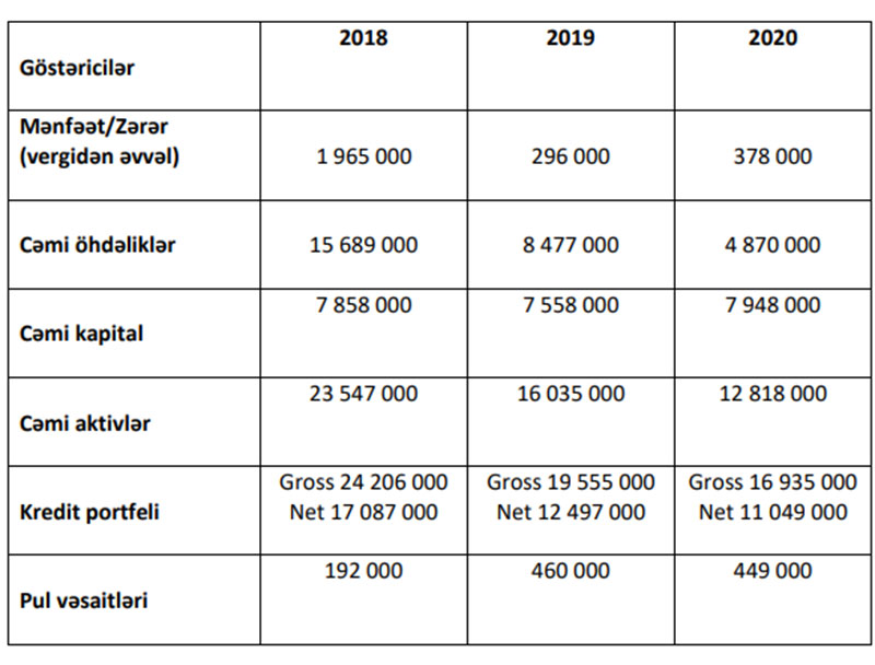 “TBC Kredit”in ötən dövrlər üzrə maliyyə nəticələri və planlaşdırılan göstəricilər: