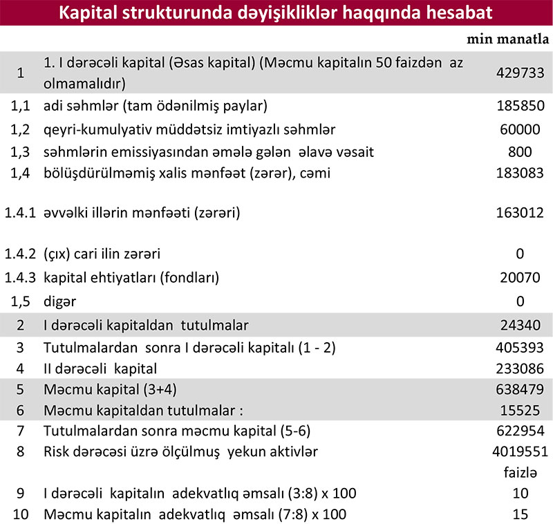 Bankın cəmi aktivləri isə 875 milyon 471 min manat və ya 17,4% artaraq 5 milyard 916 milyon 38 min manata yüksəlib.