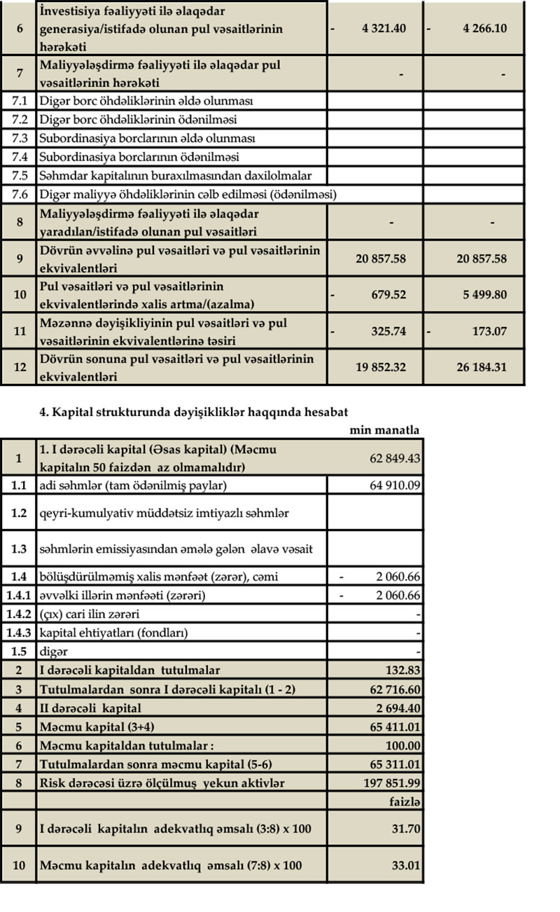 Müqayisə üçün qeyd edək ki, 2020-ci ilin yanvar-sentyabr dövründə “Günay Bank” ASC-nin cəmi əməliyyat gəlirləri 14 milyon 662 min manat, cəmi əməliyyat xərcləri 12 milyon 331 min manat, əməliyyat mənfəəti 2 milyon 330 min manat təşkil etmişdi. Bank əməliyyat mənfəətindən 2 milyon 83 min manat mümkün zərərlər üçün yaradılan məqsədli ehtiyata ayırdığında həmin dövrü 247 min manat xalis mənfəət ilə bağlamışdı.
