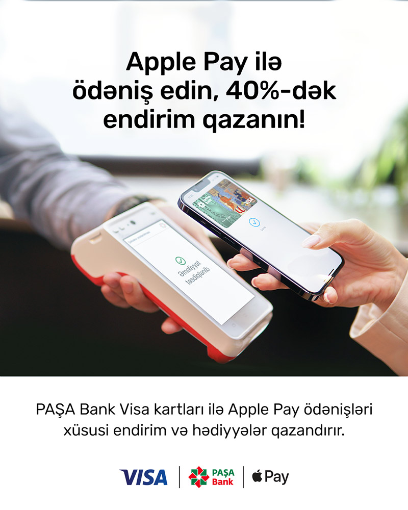 “Apple Pay” ödənişlərinizi yeni mobil tətbiqimizdən “PAŞA Bank” “Visa” kartınızla edin, müxtəlif hədiyyə və endirimlər qazanın!