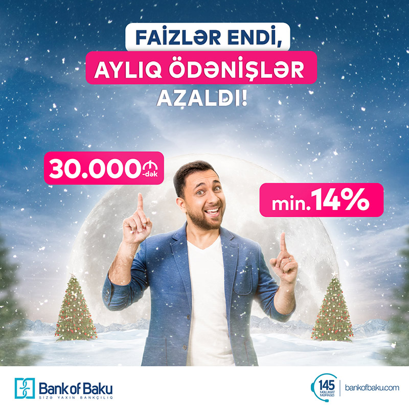 (®) Yeni ilin gəlişini sevinclə qarşılayan Bank of Baku, müştərilərinə Yeni İl möcüzəsi yaşadaraq - FAİZLƏRİ ENDİRDİ, AYLIQ ÖDƏNİŞLƏRİ AZALTDI.